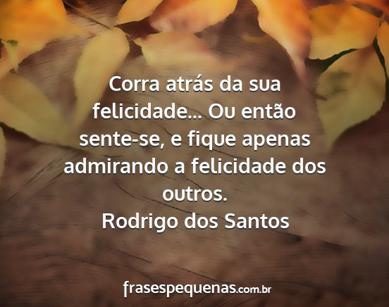 Corra atrás da sua felicidade... Ou então sente-se, e fique apenas admirando a felicidade dos outros.Rodrigo dos Santos