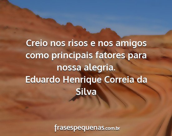 Creio nos risos e nos amigos como principais fatores para nossa alegria.Eduardo Henrique Correia da Silva