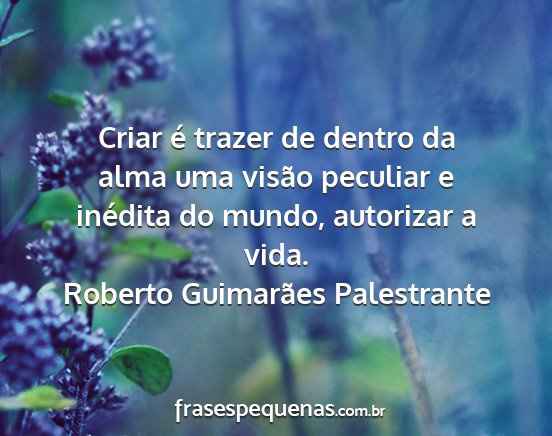 Criar é trazer de dentro da alma uma visão peculiar e inédita do mundo, autorizar a vida.Roberto Guimarães Palestrante