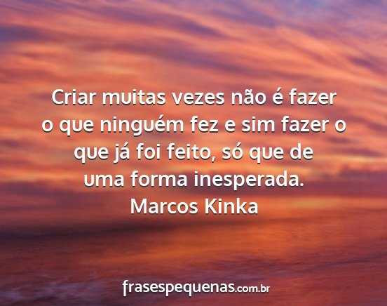 Criar muitas vezes não é fazer o que ninguém fez e sim fazer o que já foi feito, só que de uma forma inesperada.Marcos Kinka