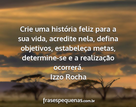 Crie uma história feliz para a sua vida, acredite nela, defina objetivos, estabeleça metas, determine-se e a realização ocorrerá.Izzo Rocha