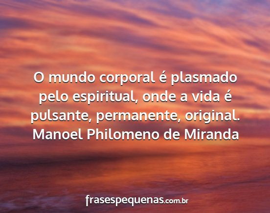 O mundo corporal é plasmado pelo espiritual, onde a vida é pulsante, permanente, original.Manoel Philomeno de Miranda