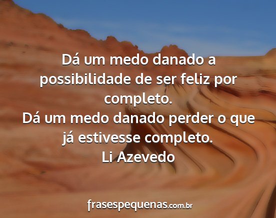 Dá um medo danado perder o que já estivesse completo.Li Azevedo