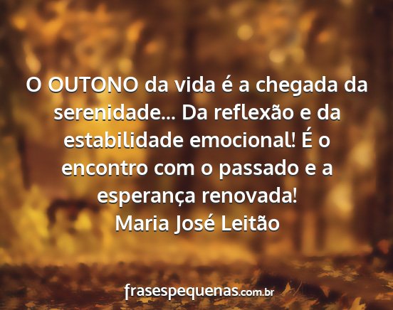 O OUTONO da vida é a chegada da serenidade... Da reflexão e da estabilidade emocional! É o encontro com o passado e a esperança renovada!Maria José Leitão