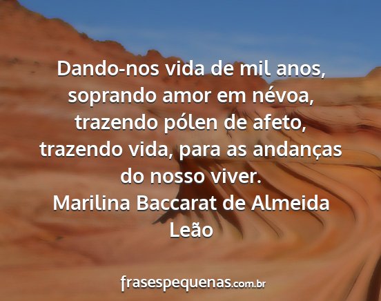 Dando-nos vida de mil anos, soprando amor em névoa, trazendo pólen de afeto, trazendo vida, para as andanças do nosso viver.Marilina Baccarat de Almeida Leão