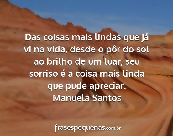 Das coisas mais lindas que já vi na vida, desde o pôr do sol ao brilho de um luar, seu sorriso é a coisa mais linda que pude apreciar.Manuela Santos