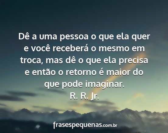 Dê a uma pessoa o que ela quer e você receberá o mesmo em troca, mas dê o que ela precisa e então o retorno é maior do que pode imaginar.R. R. Jr.