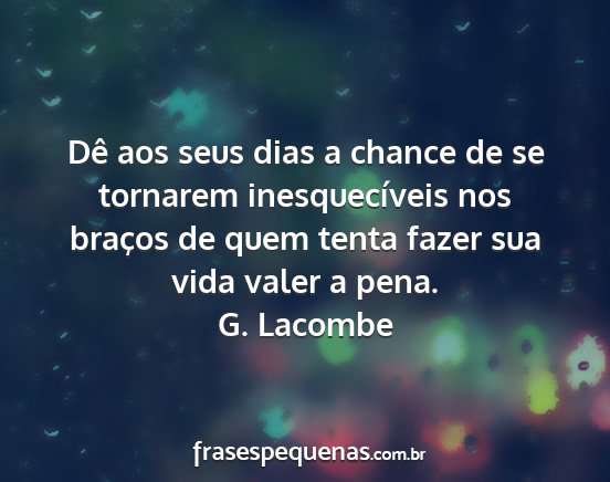 Dê aos seus dias a chance de se tornarem inesquecíveis nos braços de quem tenta fazer sua vida valer a pena.G. Lacombe