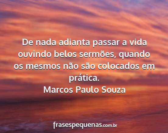 De nada adianta passar a vida ouvindo belos sermões, quando os mesmos não são colocados em prática.Marcos Paulo Souza