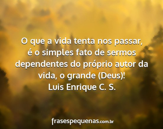 O que a vida tenta nos passar, é o simples fato de sermos dependentes do próprio autor da vida, o grande (Deus)!Luis Enrique C. S.