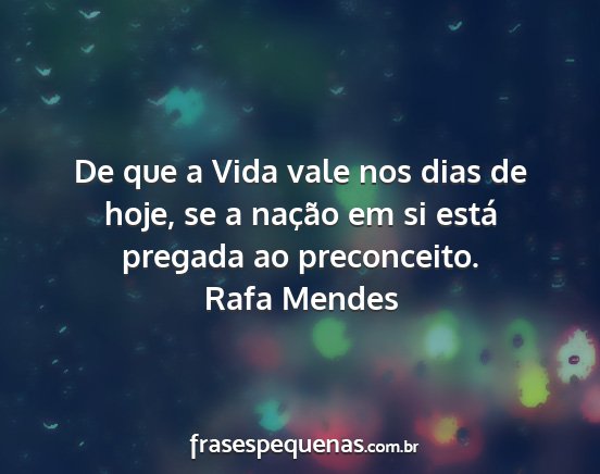 De que a Vida vale nos dias de hoje, se a nação em si está pregada ao preconceito.