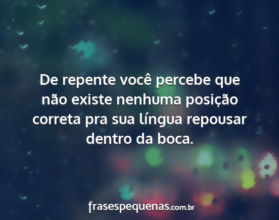 De repente você percebe que não existe nenhuma posição correta pra sua língua repousar dentro da boca.