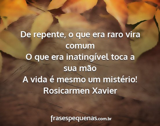 A vida é mesmo um mistério!Rosicarmen Xavier