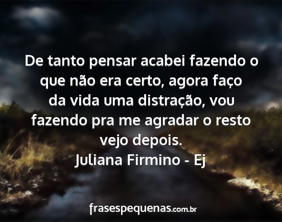De tanto pensar acabei fazendo o que não era certo, agora faço da vida uma distração, vou fazendo pra me agradar o resto vejo depois.Juliana Firmino - Ej