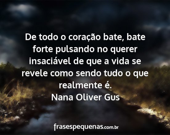 De todo o coração bate, bate forte pulsando no querer insaciável de que a vida se revele como sendo tudo o que realmente é.Nana Oliver Gus