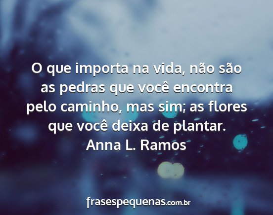 O que importa na vida, não são as pedras que você encontra pelo caminho, mas sim; as flores que você deixa de plantar.Anna L. Ramos