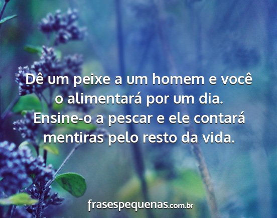 Dê um peixe a um homem e você o alimentará por um dia. Ensine-o a pescar e ele contará mentiras pelo resto da vida.