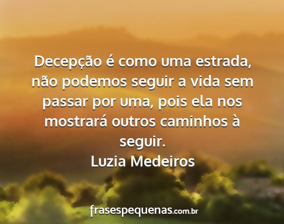 Decepção é como uma estrada, não podemos seguir a vida sem passar por uma, pois ela nos mostrará outros caminhos à seguir.Luzia Medeiros
