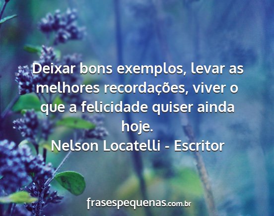 Deixar bons exemplos, levar as melhores recordações, viver o que a felicidade quiser ainda hoje.Nelson Locatelli - Escritor