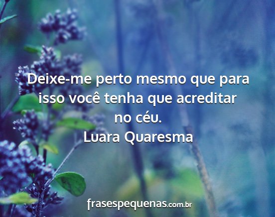 Deixe-me perto mesmo que para isso você tenha que acreditar no céu.