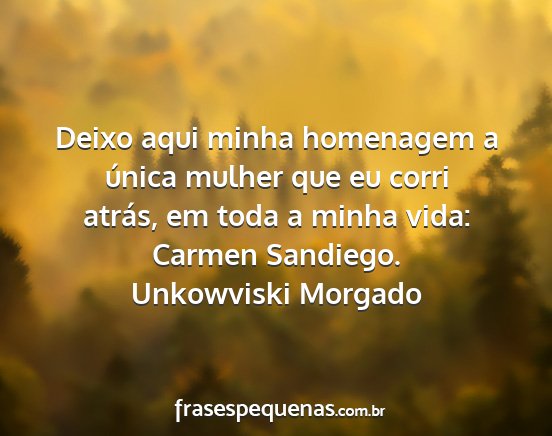 Deixo aqui minha homenagem a única mulher que eu corri atrás, em toda a minha vida: Carmen Sandiego.Unkowviski Morgado