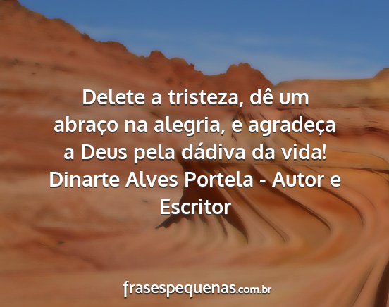 Delete a tristeza, dê um abraço na alegria, e agradeça a Deus pela dádiva da vida!Dinarte Alves Portela - Autor e Escritor