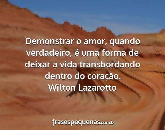 Demonstrar o amor, quando verdadeiro, é uma forma de deixar a vida transbordando dentro do coração.Wilton Lazarotto
