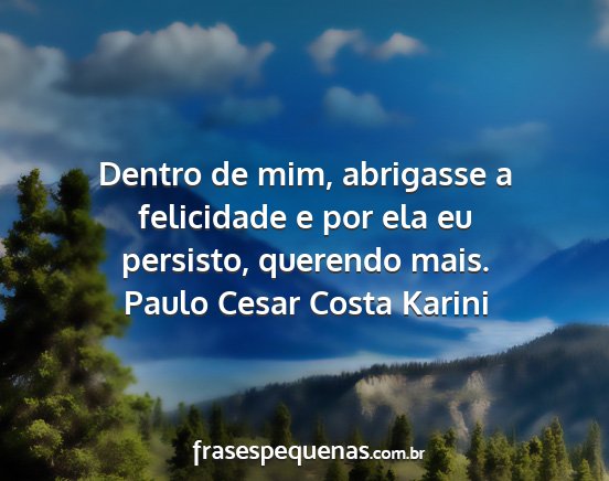 Dentro de mim, abrigasse a felicidade e por ela eu persisto, querendo mais.