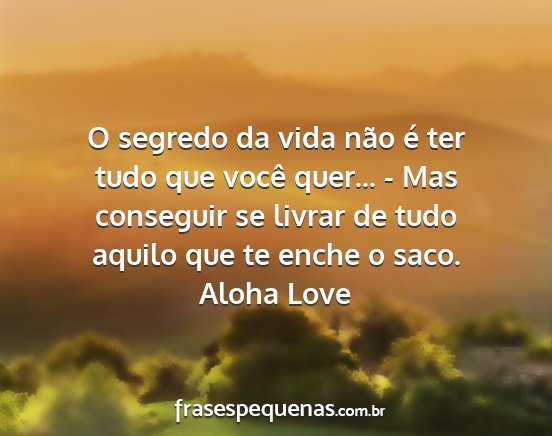 O segredo da vida não é ter tudo que você quer... - Mas conseguir se livrar de tudo aquilo que te enche o saco.Aloha Love
