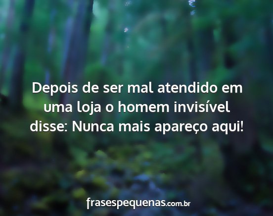 Depois de ser mal atendido em uma loja o homem invisível disse: Nunca mais apareço aqui!