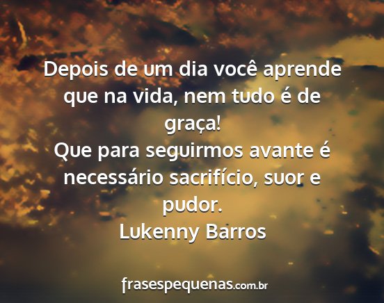 Que para seguirmos avante é necessário sacrifício, suor e pudor.Lukenny Barros