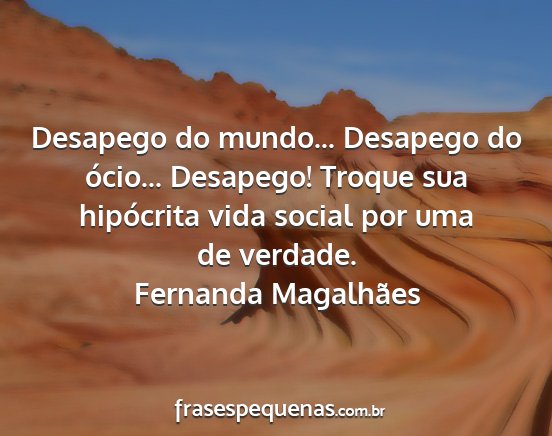 Desapego do mundo... Desapego do ócio... Desapego! Troque sua hipócrita vida social por uma de verdade.Fernanda Magalhães