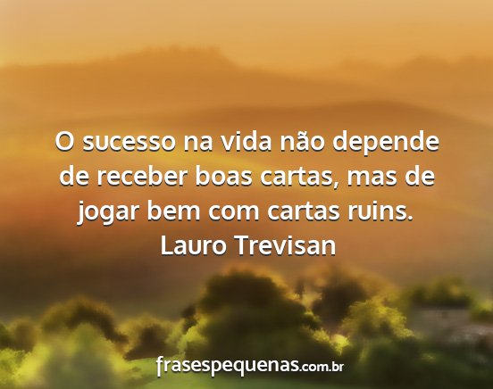 O sucesso na vida não depende de receber boas cartas, mas de jogar bem com cartas ruins.Lauro Trevisan