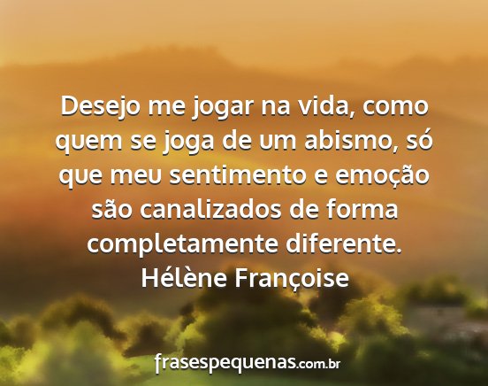 Desejo me jogar na vida, como quem se joga de um abismo, só que meu sentimento e emoção são canalizados de forma completamente diferente.Hélène Françoise