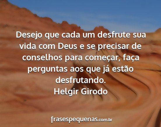 Desejo que cada um desfrute sua vida com Deus e se precisar de conselhos para começar, faça perguntas aos que já estão desfrutando.Helgir Girodo