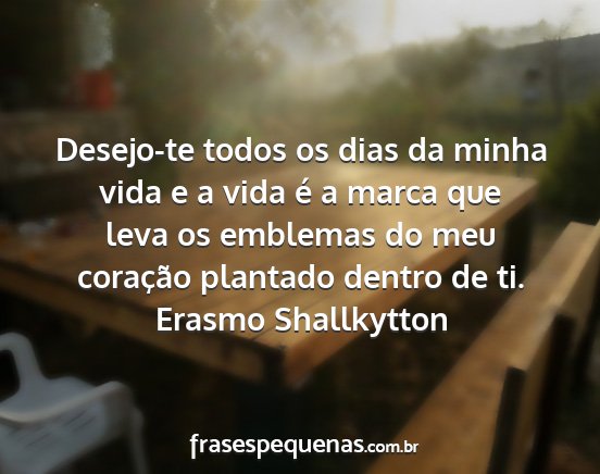 Desejo-te todos os dias da minha vida e a vida é a marca que leva os emblemas do meu coração plantado dentro de ti.Erasmo Shallkytton
