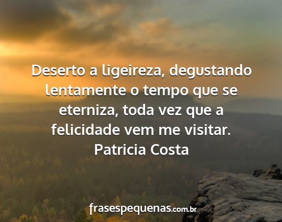 Deserto a ligeireza, degustando lentamente o tempo que se eterniza, toda vez que a felicidade vem me visitar.Patricia Costa