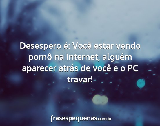 Desespero é: Você estar vendo pornô na internet, alguém aparecer atrás de você e o PC travar!