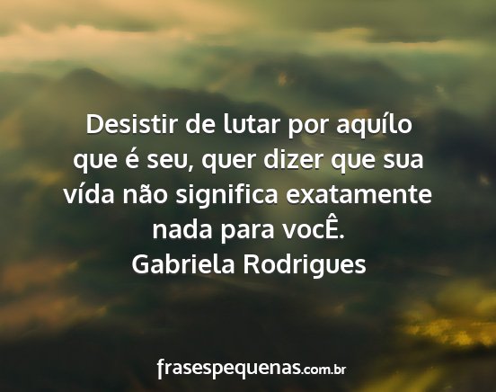 Desistir de lutar por aquílo que é seu, quer dizer que sua vída não significa exatamente nada para vocÊ.Gabriela Rodrigues