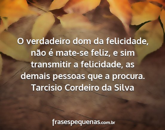 O verdadeiro dom da felicidade, não é mate-se feliz, e sim transmitir a felicidade, as demais pessoas que a procura.Tarcisio Cordeiro da Silva