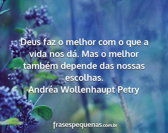 Deus faz o melhor com o que a vida nos dá. Mas o melhor também depende das nossas escolhas.Andréa Wollenhaupt Petry