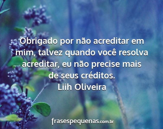 Obrigado por não acreditar em mim, talvez quando você resolva acreditar, eu não precise mais de seus créditos.Liih Oliveira