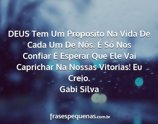 DEUS Tem Um Proposito Na Vida De Cada Um De Nós. É Só Nos Confiar E Esperar Que Ele Vai Caprichar Na Nossas Vitorias! Eu Creio.Gabi Silva