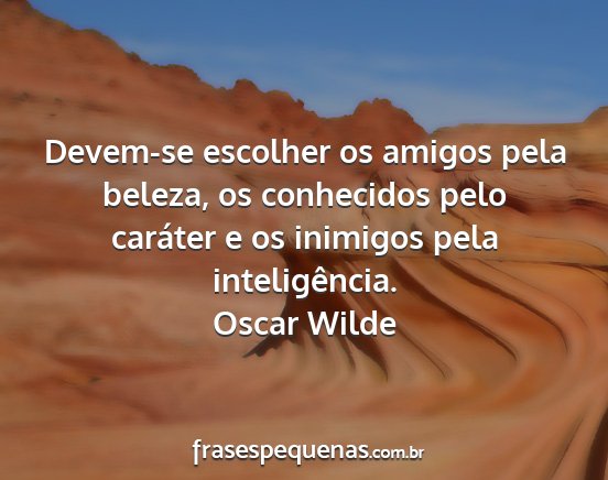 Devem-se escolher os amigos pela beleza, os conhecidos pelo caráter e os inimigos pela inteligência.Oscar Wilde