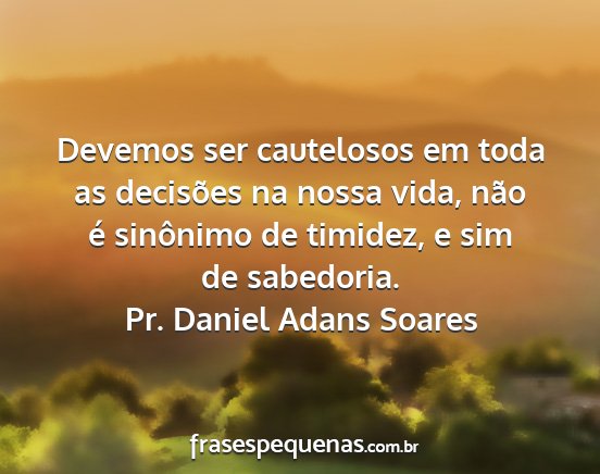 Devemos ser cautelosos em toda as decisões na nossa vida, não é sinônimo de timidez, e sim de sabedoria.Pr. Daniel Adans Soares