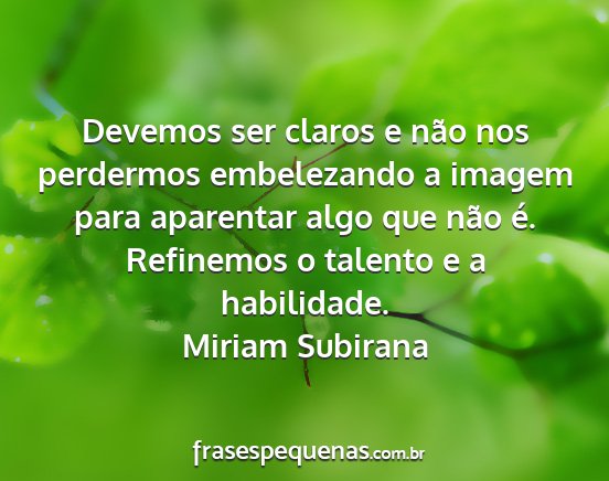 Devemos ser claros e não nos perdermos embelezando a imagem para aparentar algo que não é. Refinemos o talento e a habilidade.Miriam Subirana