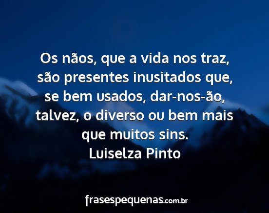 Os nãos, que a vida nos traz, são presentes inusitados que, se bem usados, dar-nos-ão, talvez, o diverso ou bem mais que muitos sins.Luiselza Pinto