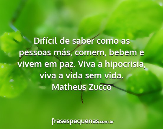 Difícil de saber como as pessoas más, comem, bebem e vivem em paz. Viva a hipocrisia, viva a vida sem vida.Matheus Zucco