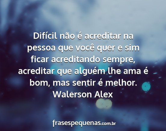 Difícil não é acreditar na pessoa que você quer e sim ficar acreditando sempre, acreditar que alguém lhe ama é bom, mas sentir é melhor.Walerson Alex