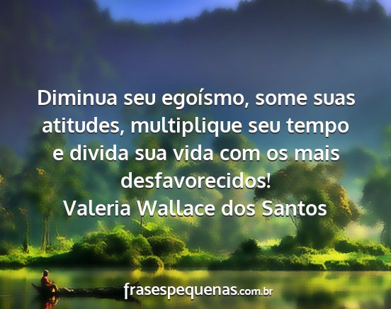 Diminua seu egoísmo, some suas atitudes, multiplique seu tempo e divida sua vida com os mais desfavorecidos!Valeria Wallace dos Santos